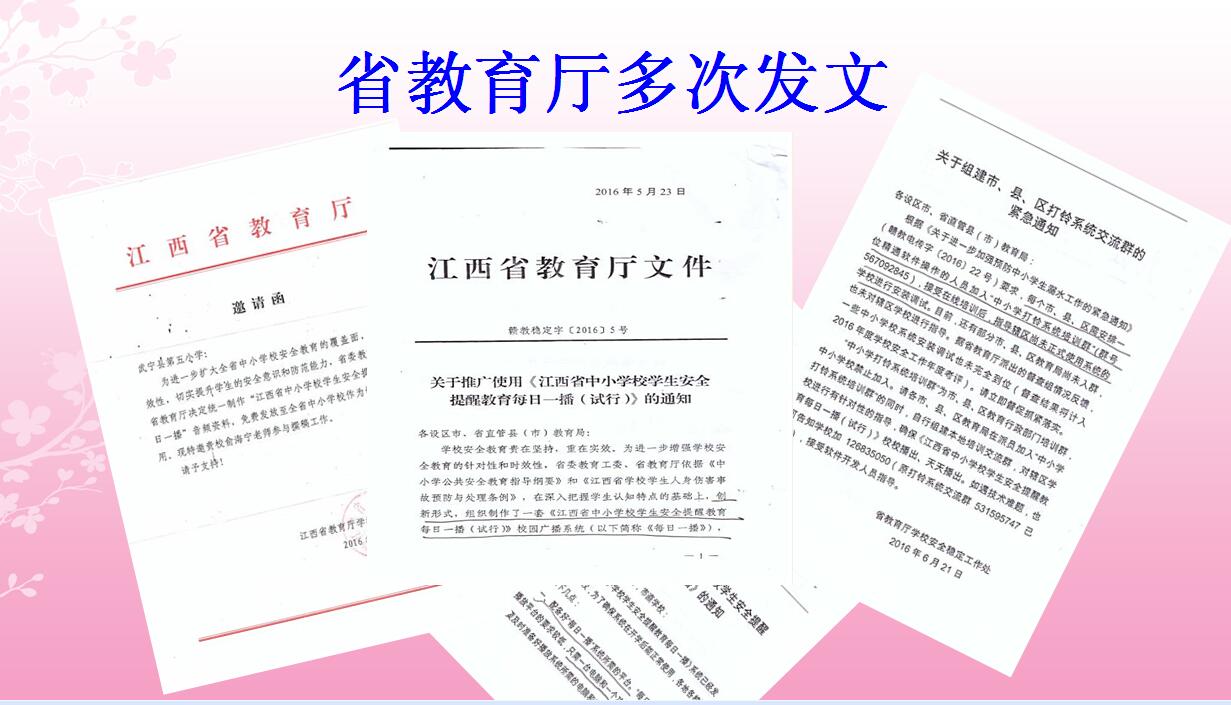 由于利用打铃声进行安全教育,内容全面,时常更新,效果非常好,半年就推广到6000多所学校,现在已经有17708所学校注册了。(qq:18879270029 电话18879270029)