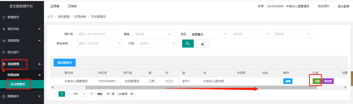 每个学校都可以有一个预设的帐号密码,请向我们索要,注册入口网址http://wpt.qmxyls.com/mryb_@_jy.php,帐号和密码登陆后可以自行更改。登陆后点击“系统管理--权限控制--后台管理员”,请向右拉中间滚动条,找到绿色的“打铃”按钮,点开后完善基础信息,点击开通即时完成了注册,如仍有疑问请垂询QQ2544725204。
