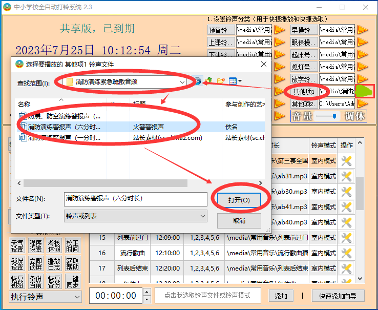 每日一播打铃软件三步即可设置紧急疏散铃声。请点软件的右上模块