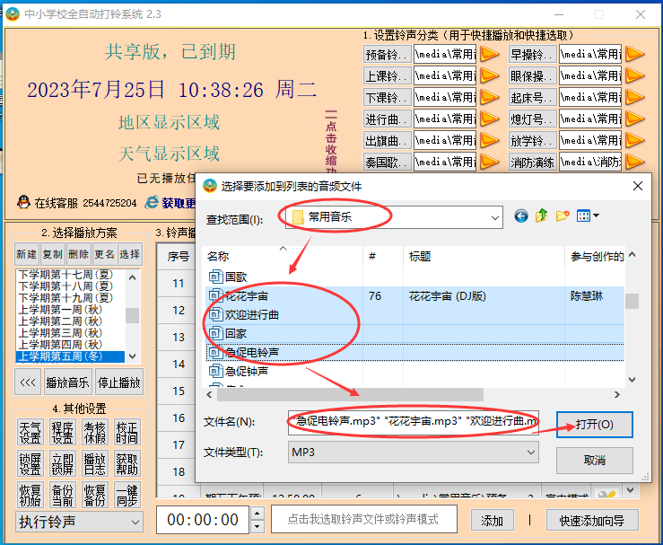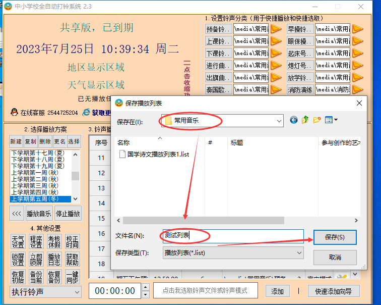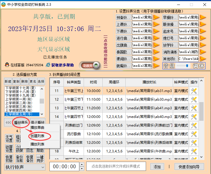 系统里已内置数百个音乐列表,且按红色歌曲、校园歌曲、流行歌曲、传统文化等不同主题进行了分类,各校可以直接使用。