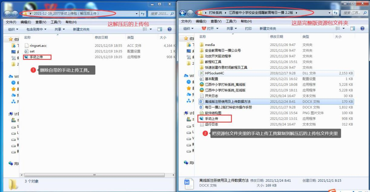 7、注意事项:导出的上传包解压后,里面自带的“手动上传”工具需要删除,把资源包文件夹里的“手动工具”保存进去使用。(2.3版不需要换‘手动工具’)
