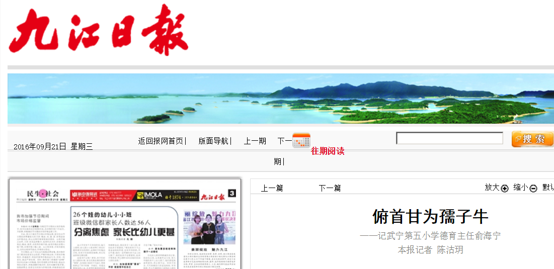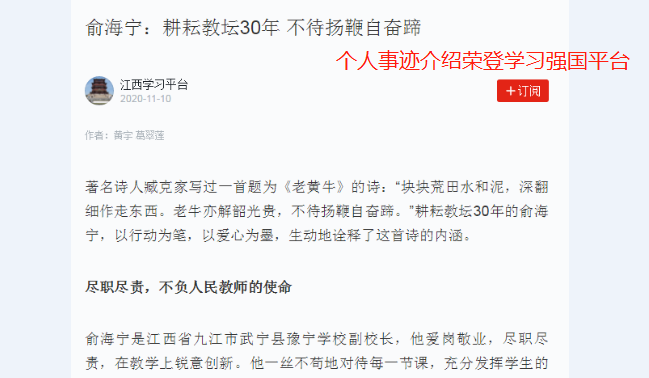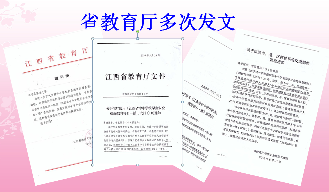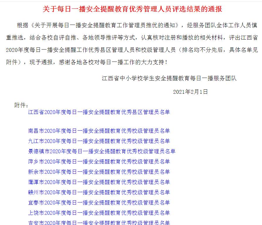他参加了江西省教育厅安全处组织的《江西省中小学校学生安全提醒教育每日一播》编写活动,在此基础上自费研发了配套的打铃软件,目前这套系统已经应用于全省中小学,惠及710多万中小学生。