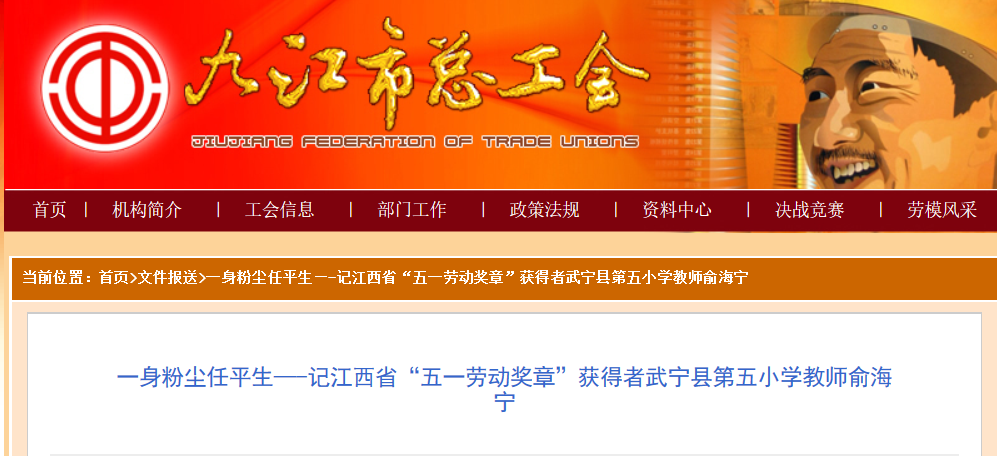 俞海宁,男,汉族,现年 54岁,江西省武宁县第五
