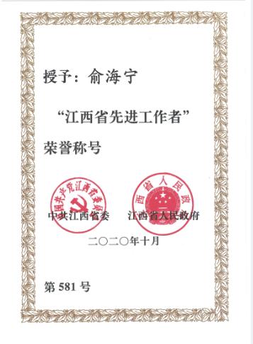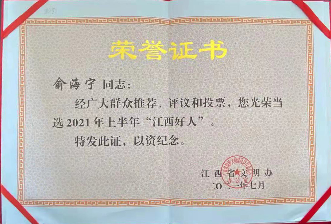 他对教育事业做出了突出贡献,他的师德、师风、师技得到了县市省教育部门的高度肯定。2020年10月,他被江西省省委、省政府授予“江西省先进工作者”。2021年7月,又被江西省文明办评为“江西好人”。