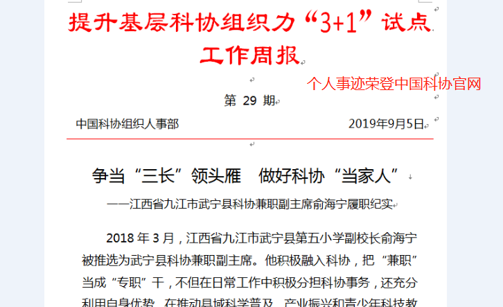 他是武宁县青少年科教拓荒者,热心科教公益事业,形成了独具特色的创新教育方法,他指导的学生多次获得国家级、省级科技创新竞赛奖项,自己也成为全国优秀科技辅导员。